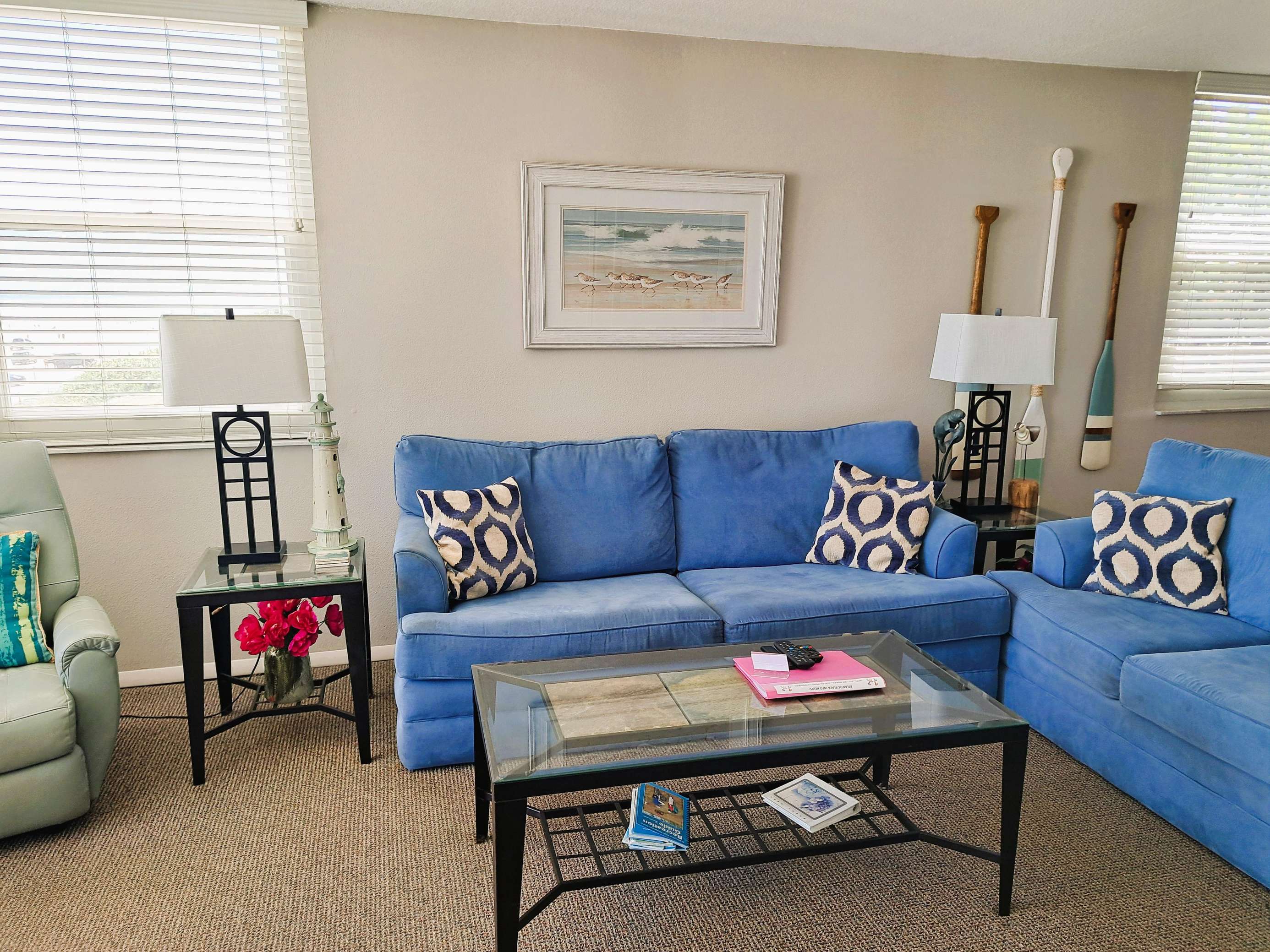 This beautiful 2 bedroom / 2 bath condominium unit is located in the Atlantic Plaza Condominium on New Smyrna Beach, Florida. Unit 301 is located on the 3rd floor facing the Atlantic Ocean. The unit provides you and your family with a wonderfully safe place to relax, unwind and enjoy a tropical paradise in our quaint beachy town. From unique dining to long sandy beaches…New Smyrna Beach is a great place for a family-friendly experience for your Florida vacation. This 3rd floor oceanFRONT unit is great just to sit on the unit's balcony and watch the activities on the pool deck and beach. The master bedroom, guest bedroom PLUS the living room all have TVs. Maximum occupancy is 6 persons (heartbeats). Beachy and well appointed. Newly painted and updated. Great sunrises viewed from here. Come stay here and check it out!
