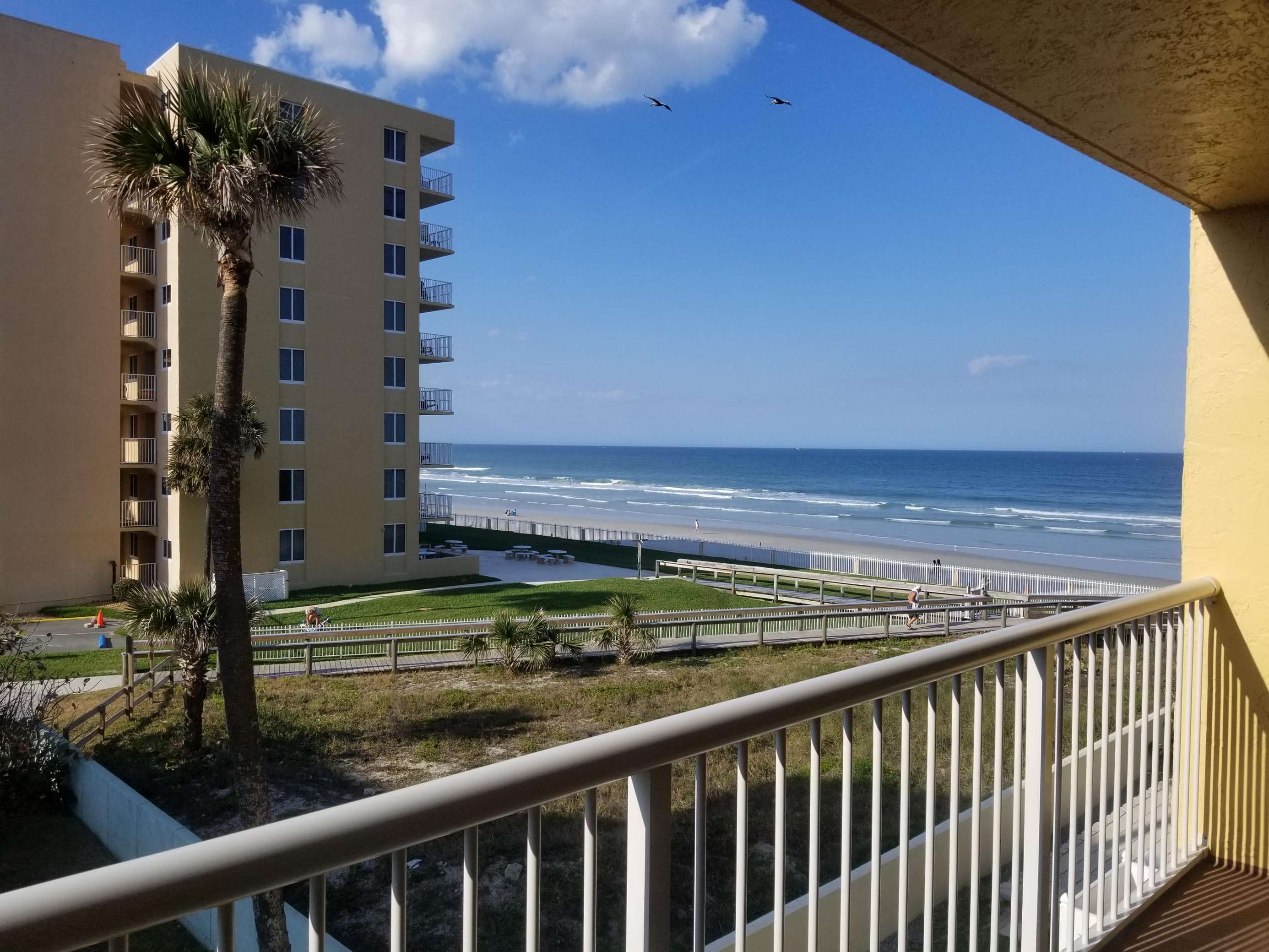 This 3rd floor 2 bedroom / 2 bath condominium unit is located in the Atlantic Plaza Condominium on New Smyrna Beach, Florida. Unit 304 is located on the 3rd floor facing North. This unit provides you and your family with a wonderful safe place to relax, unwind and enjoy a tropical paradise in our quaint beachy town. From unique dining to long sandy beaches…New Smyrna Beach is a great place for a family-friendly experience for your Florida vacation. The entire unit has planking throughout with privacy doors to the guest bedroom. The master bedroom PLUS the living room have a TV. Maximum occupancy is 6 persons (heartbeats). This 3rd floor oceanVIEW unit is a nice place to just sit and relax and view the natural dune area with all the sights and beach sounds. Great view of the Gopher turtle protected area and the County beach walkway.