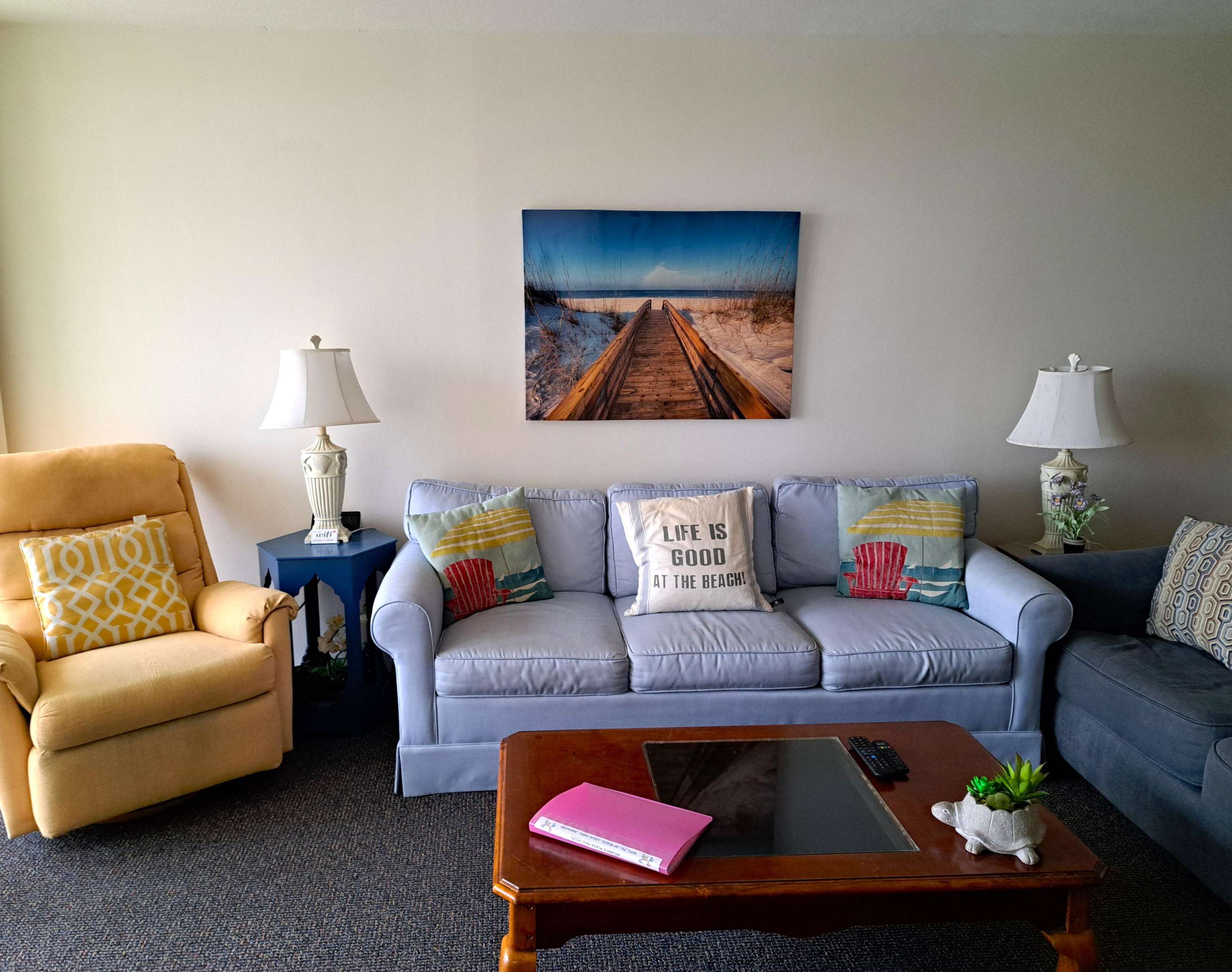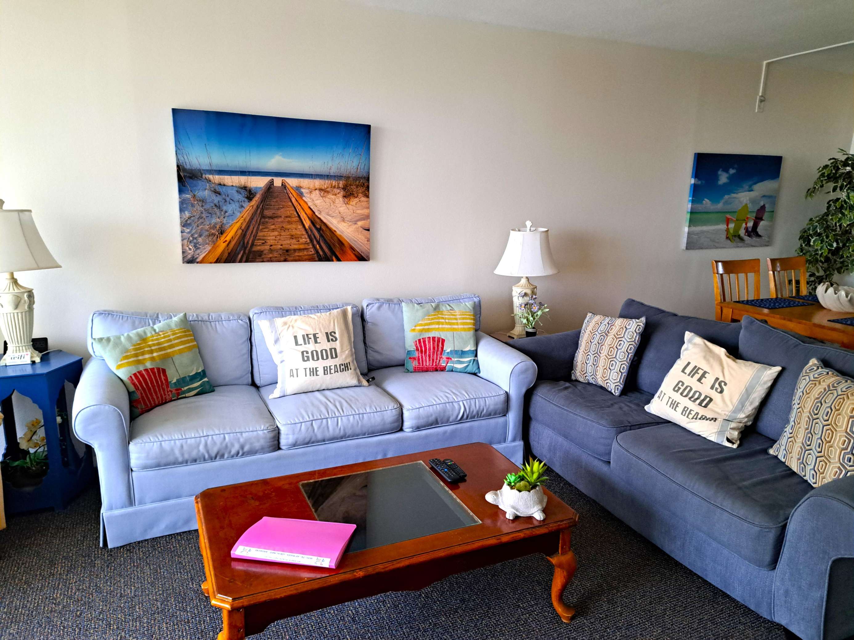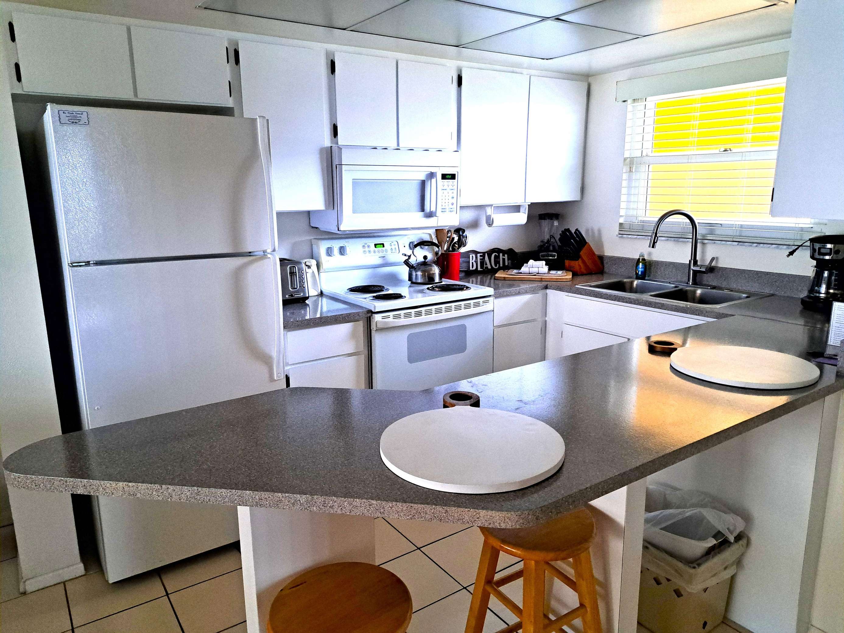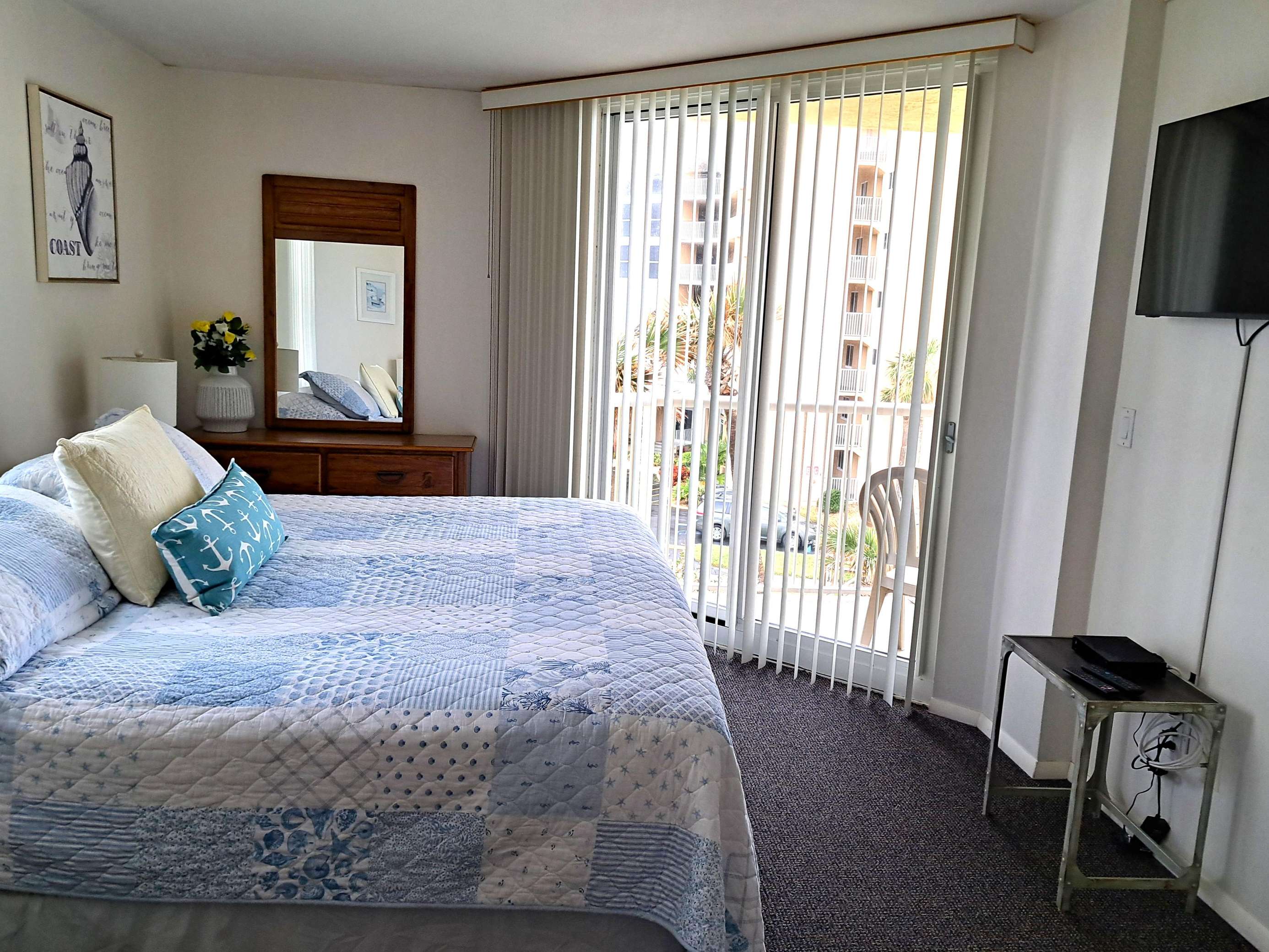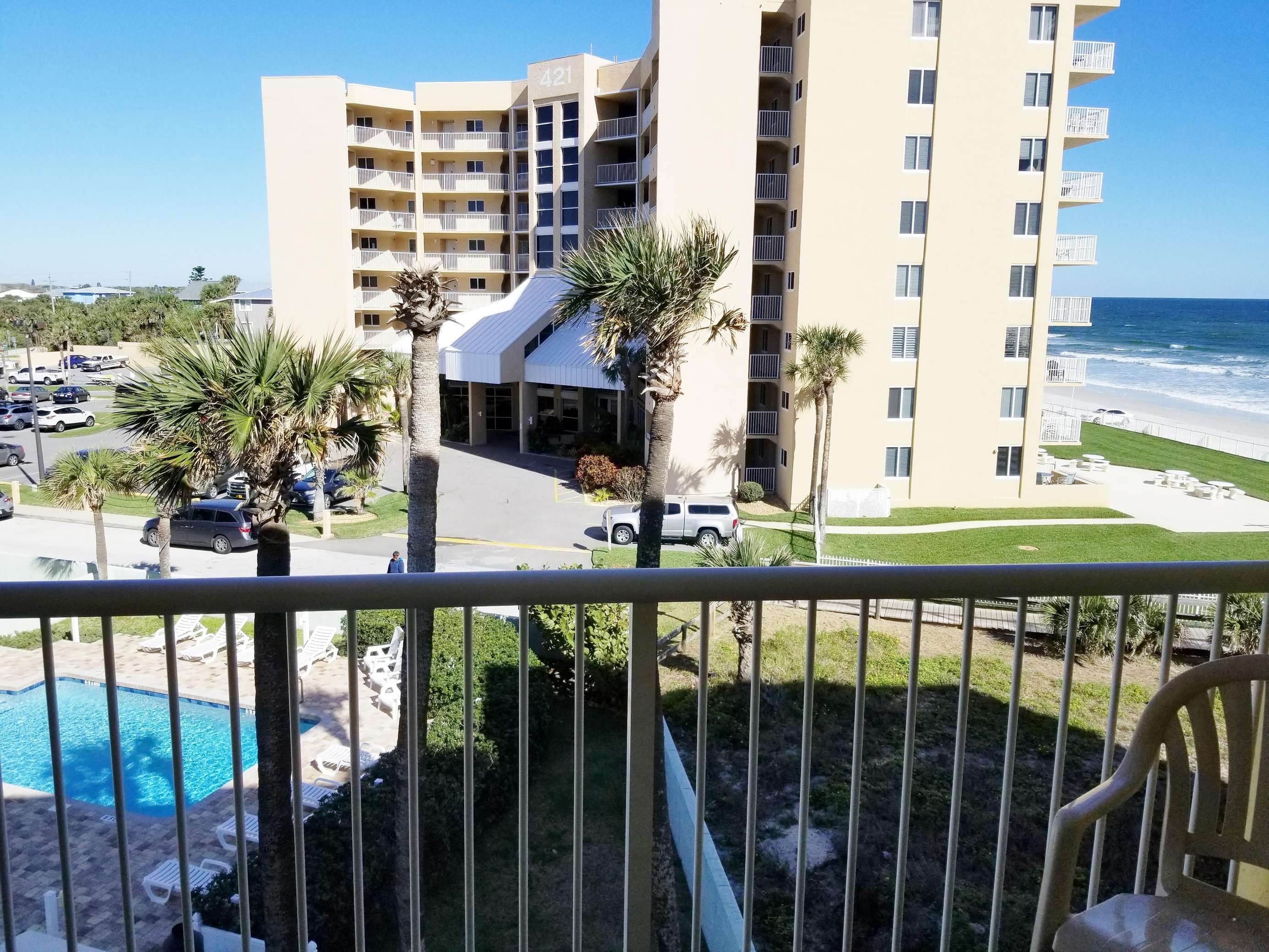 This 4th floor 2 bedroom / 2 bath condominium unit is located in the Atlantic Plaza Condominium on New Smyrna Beach, Florida. Unit 404 is located on the 4th floor facing North. Unit 404 provides you and your family with a wonderfully safe place to relax, unwind and enjoy a tropical paradise in our quaint beachy town. From unique dining to long sandy beaches…New Smyrna Beach is a great place for a family-friendly experience for your Florida vacation. The master bedroom, guest bedroom PLUS the living room all have a TV's. Maximum occupancy is 6 persons (heartbeats). Again, this 4th floor North facing side oceanVIEW unit is a nice place to just pause and relax. While sitting on the balcony you can view the natural dune area and beach sights as you listen to all the beach sounds. Great view of the Gopher turtle protected area and the County beach walkway. Tasteful and very comfortable with a "barn style privacy door" for the guest bedroom. NOTE: newly completed kitchen cabinets and counter top.