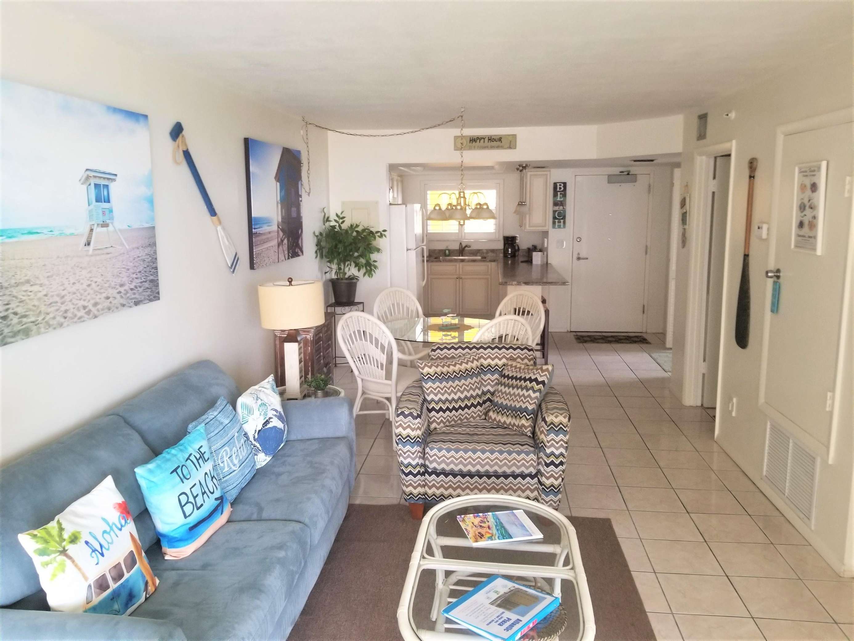 This 2 bedroom / 2 bath condominium unit is located in the Atlantic Plaza Condominium on New Smyrna Beach, Florida. Unit 504 is located on the 5th floor facing North. The Atlantic Ocean is to your right. The unit provides you and your family with a wonderful safe place to relax, unwind and enjoy a tropical paradise in our quaint beachy town. From unique dining to long sandy beaches…New Smyrna Beach is a great place for a family-friendly experience for your Florida vacation. Maximum occupancy is 6 persons (heartbeats). This 5th floor oceanVIEW unit is a nice place to just sit on the balcony and watch people and the Gopher turtle protected area and the County beach walkway. Beachy and well appointed.