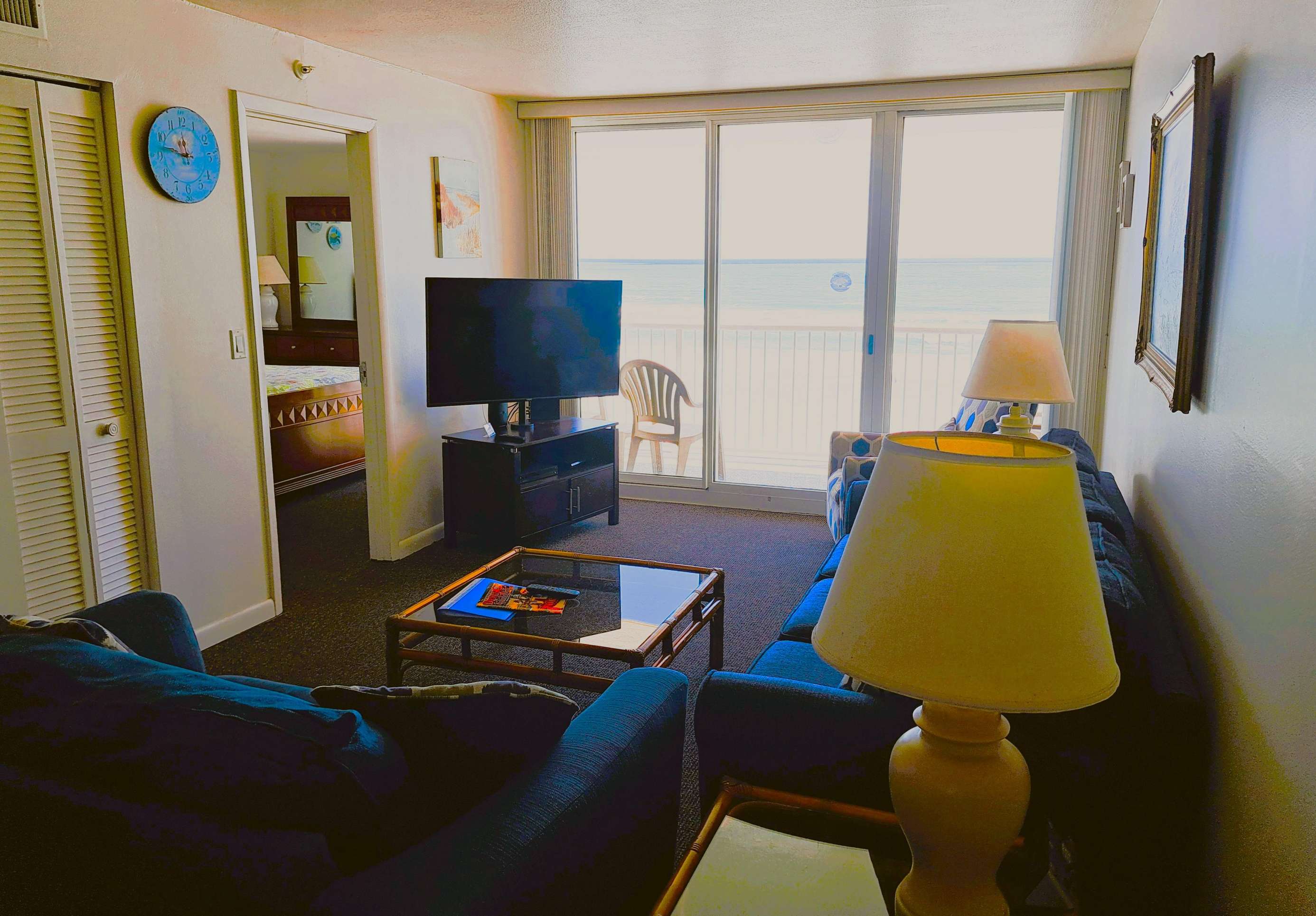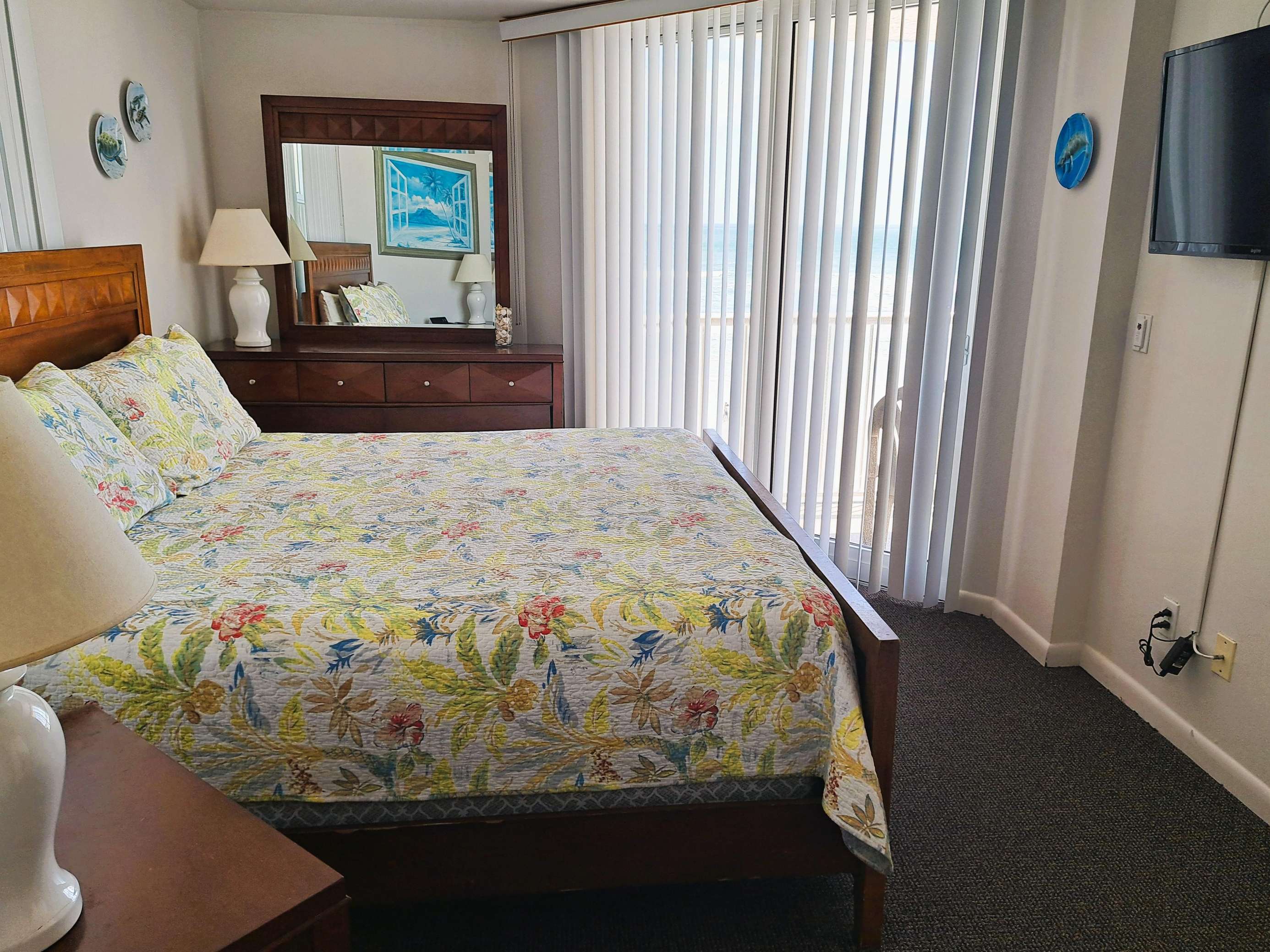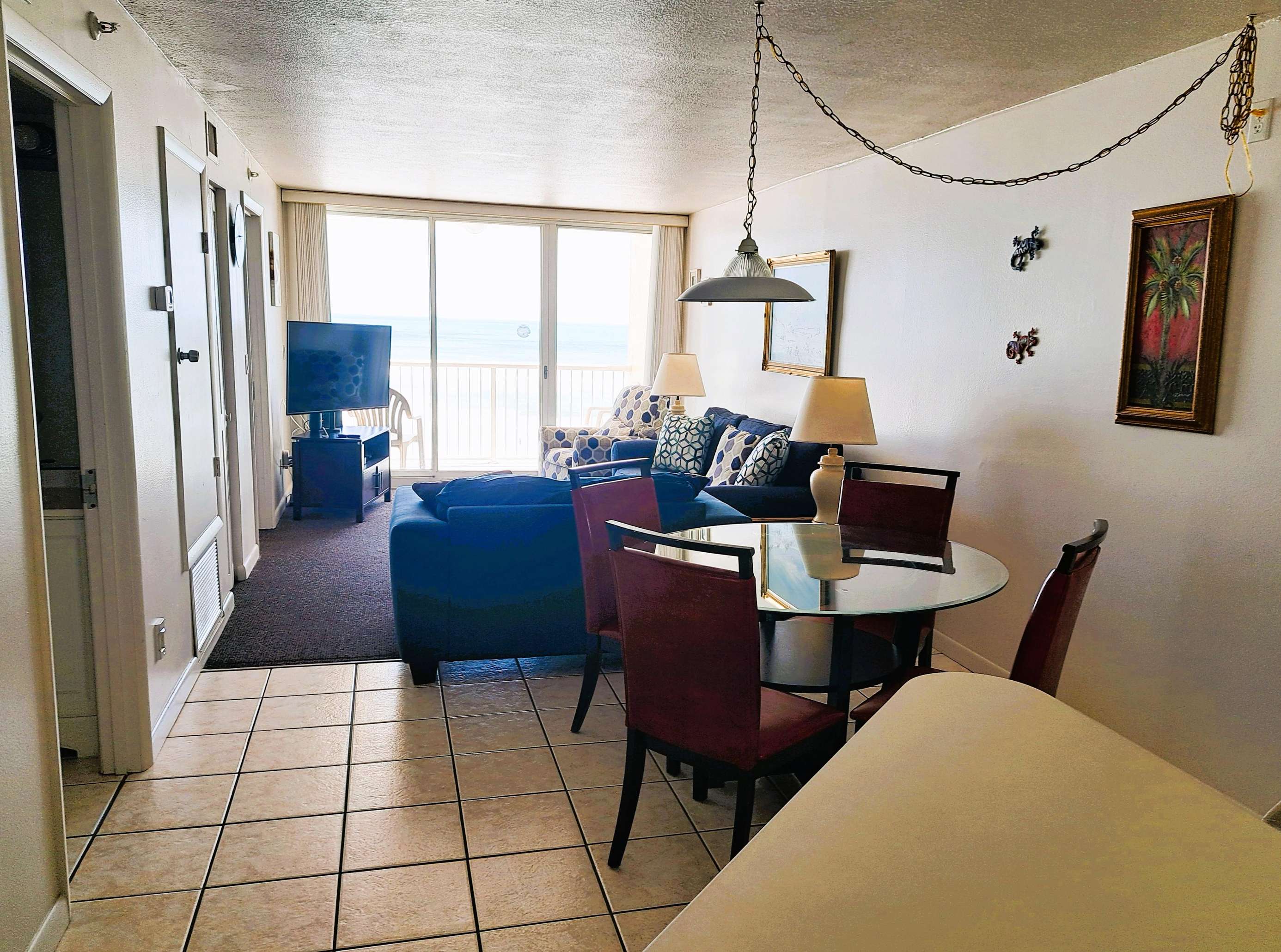 This 2 bedroom / 2 bath condominium unit is located in the Atlantic Plaza Condominium in New Smyrna Beach. Unit 602 is located on the 6th floor facing the Atlantic Ocean. The unit provides you and your family with a wonderfully safe place to relax, unwind and enjoy a tropical paradise in our quaint beachy town. From unique dining to long sandy beaches…New Smyrna Beach is a great place for a family-friendly experience for your Florida vacation. This 6th floor oceanFRONT unit is great for families. Each bedroom PLUS the living room have a TV. Maximum occupancy is 6 persons (heartbeats!). Tastefully decorated for a relaxing couple or family vacation. The living room has one recliner, a love seat and a queen size sofa bed.