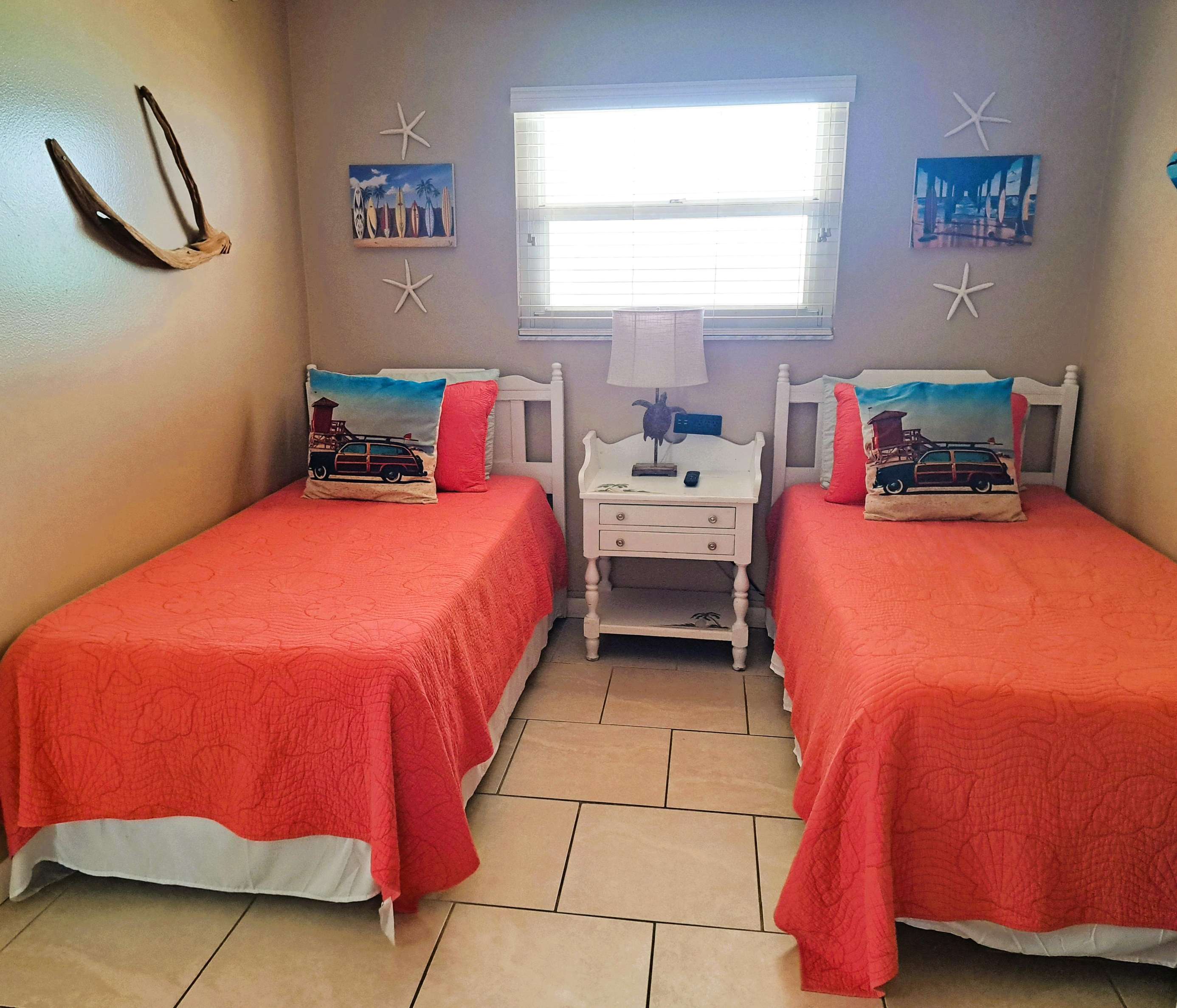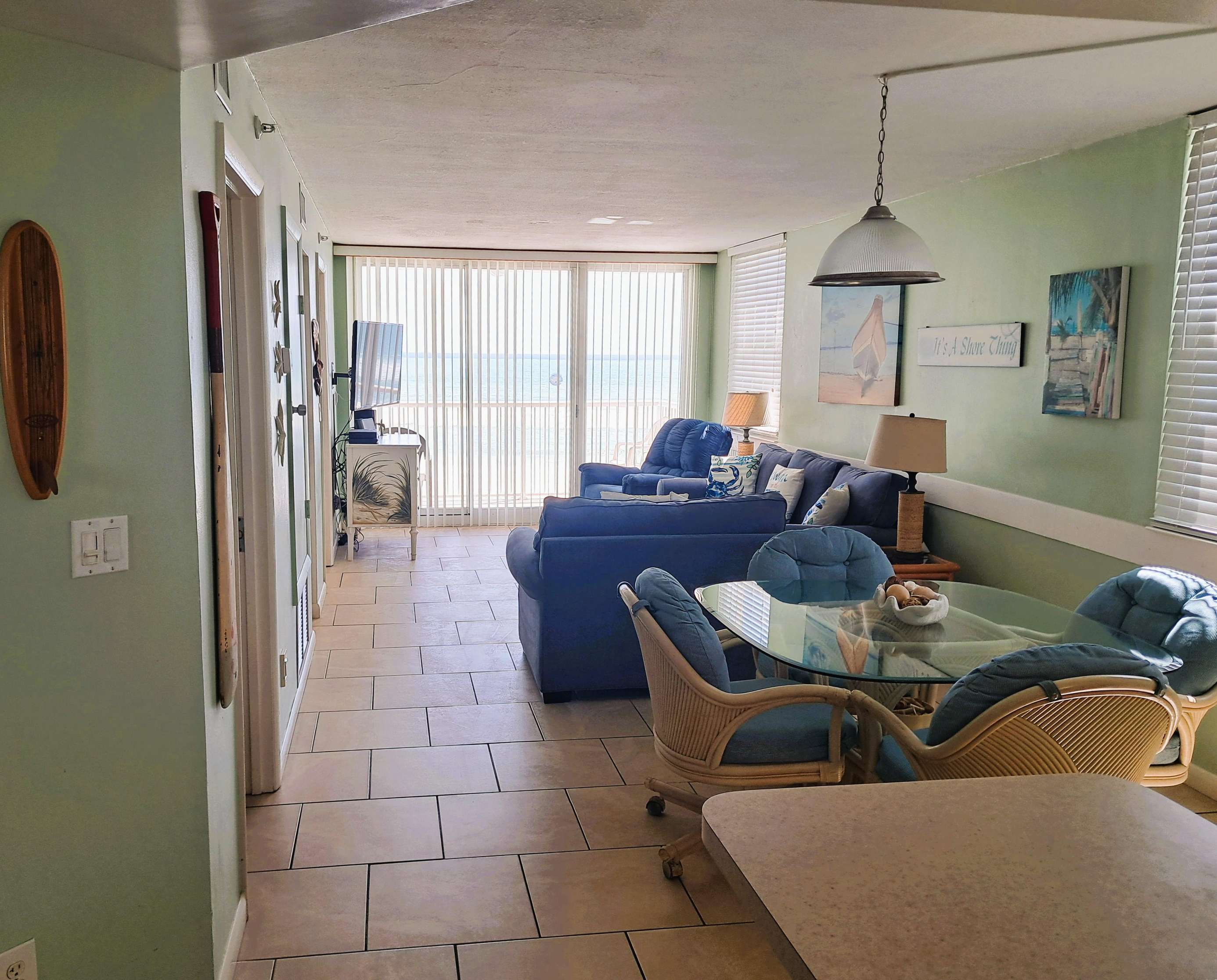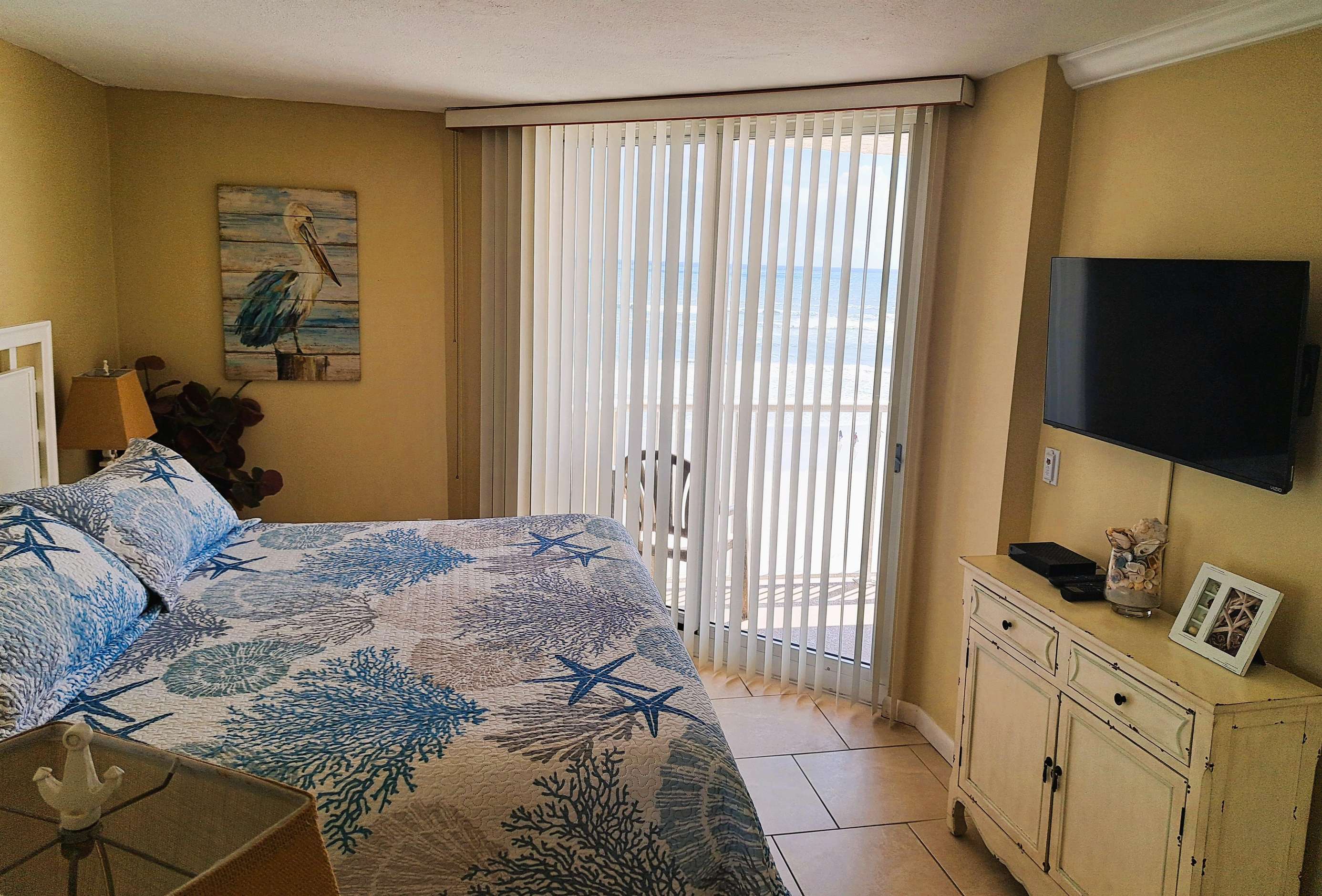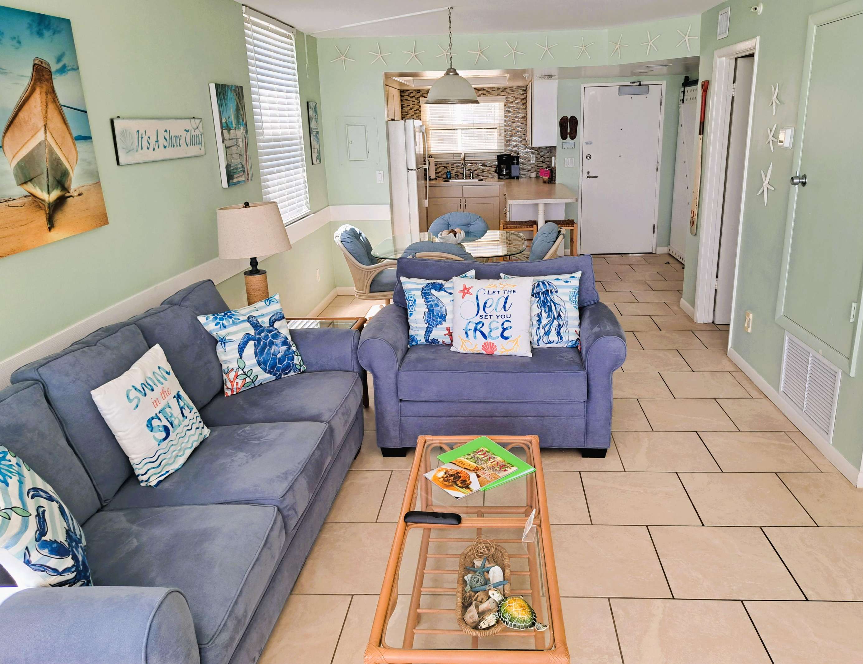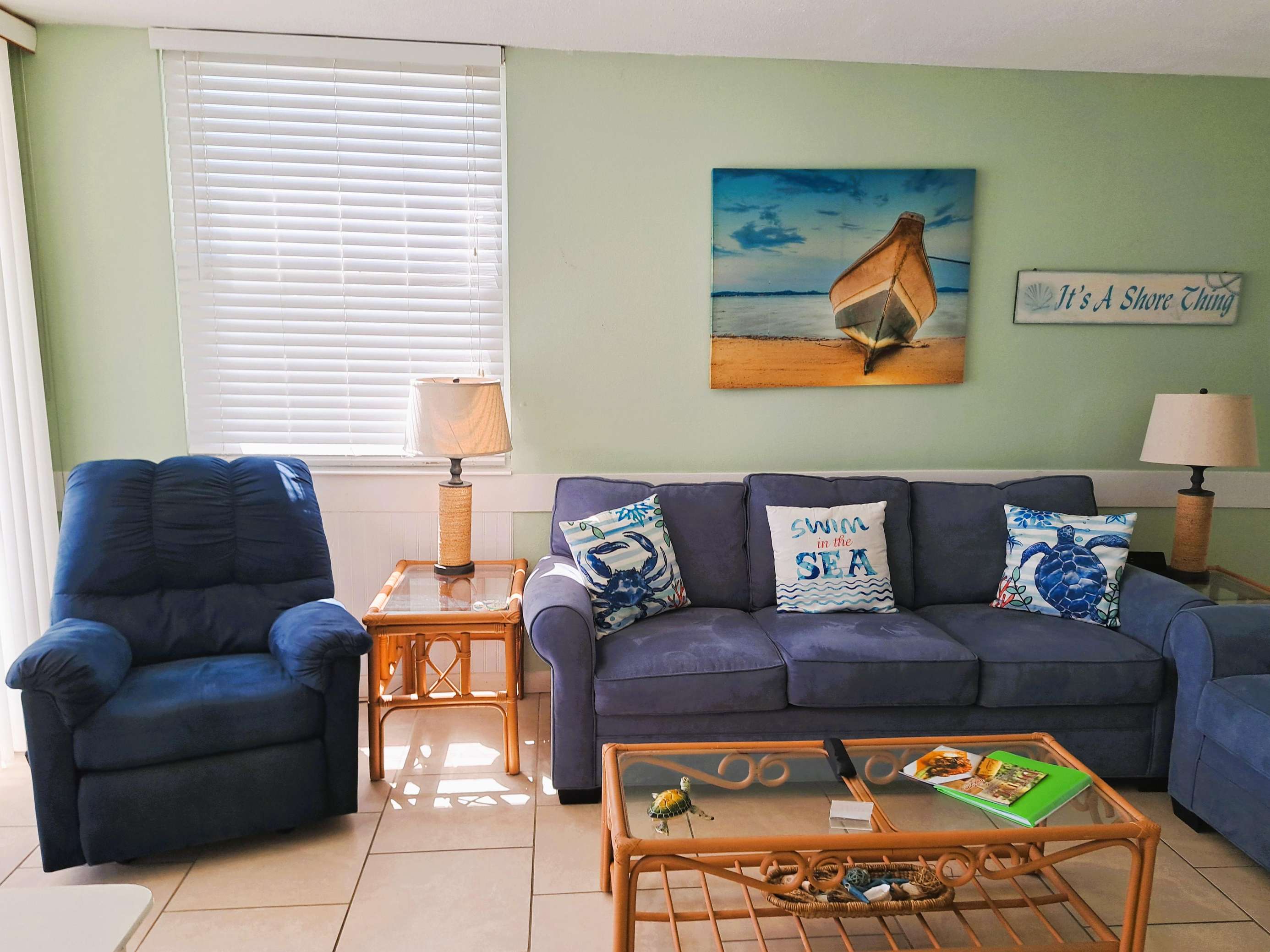 This beautiful 2 bedroom / 2 bath condominium unit is located on the TOP floor of the Atlantic Plaza Condominium in New Smyrna Beach, Florida. Unit 701 is located on the 7th floor facing the Atlantic Ocean. The unit provides you and your family with a wonderfully safe place to relax, unwind and enjoy a tropical paradise in our quaint beachy town. From unique dining to long sandy beaches…New Smyrna Beach is a great place for a family-friendly experience for your Florida vacation. This unit features all tile floors and a tropical theme throughout. Also, each bedroom PLUS the living room have a TV. There is one recliner, a love seat and a queen size sleeper sofa in the living room. Maximum occupancy is 6 persons (heartbeats!). Very beachy and well appointed. This unit exudes happiness!